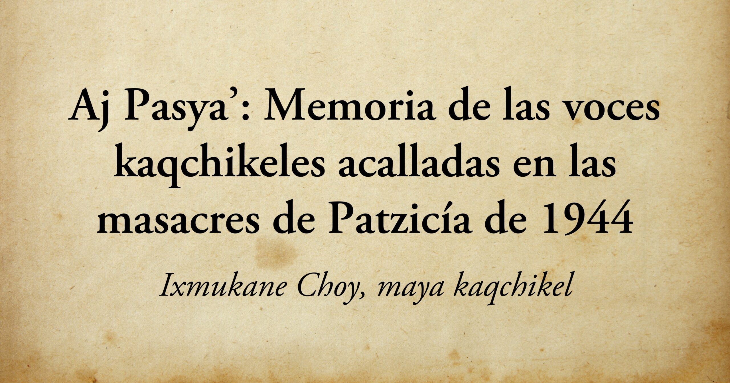 Aj Pasya’: Memoria de las voces kaqchikeles acalladas en las masacres de PatzicÃa de 1944Â