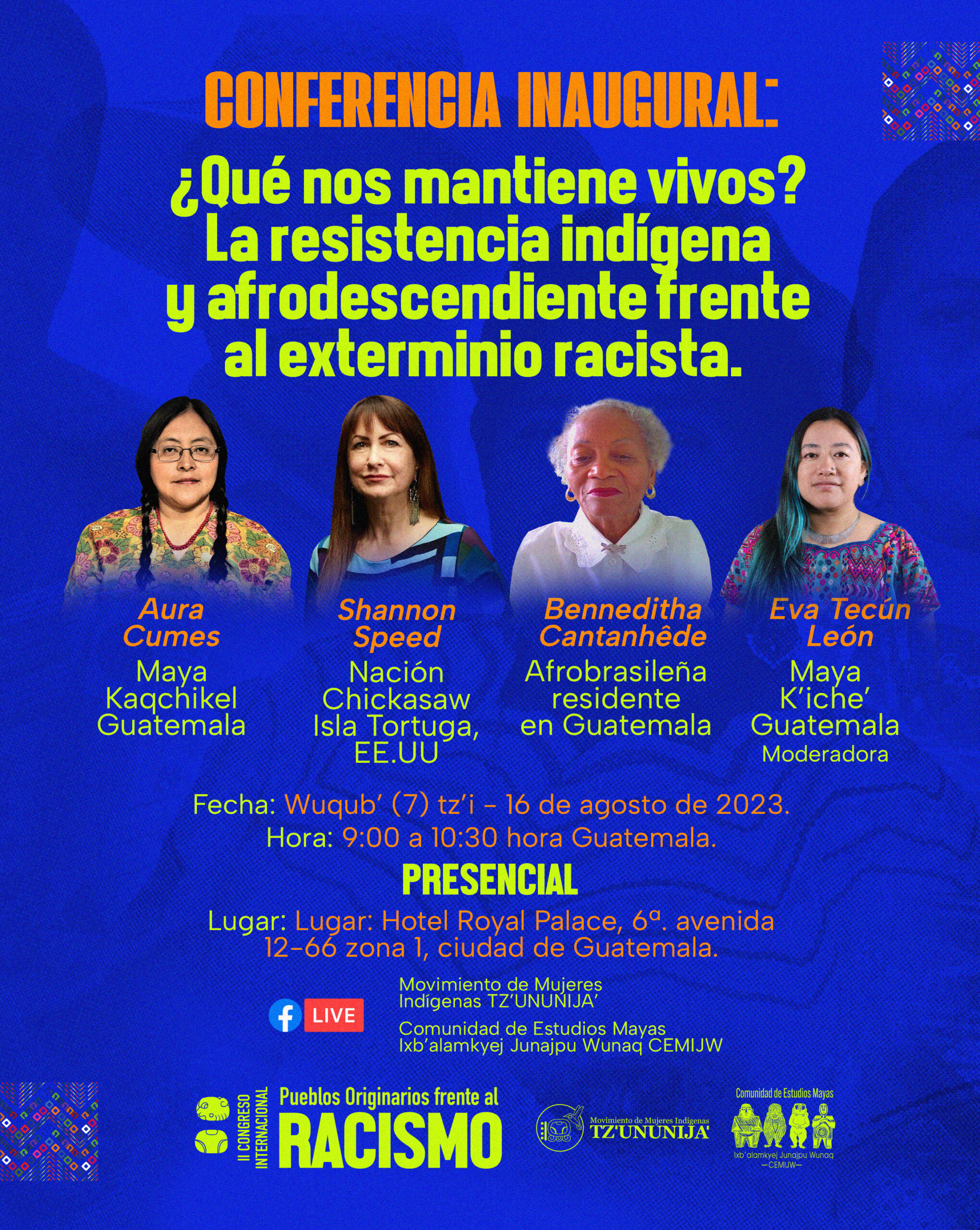 - Moderación: Eva Tecún León, Maya K’iche’.