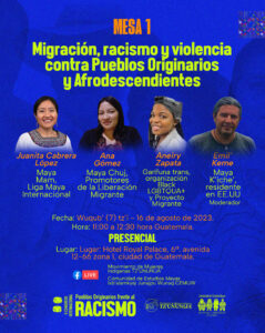 - Causas de la migración forzada: despojo de territorios, racismo estructural, violencia sexual, y pobreza extrema. El trabajo de la Liga Maya Internacional por los derechos de las migrantes indígenas en Estados Unidos. Juanita Cabrera López, Maya Mam, Liga Maya Internacional.
