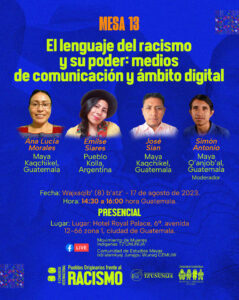 - Moderación: Emil’ Keme, Maya K’iche’, residente en EE.UU.